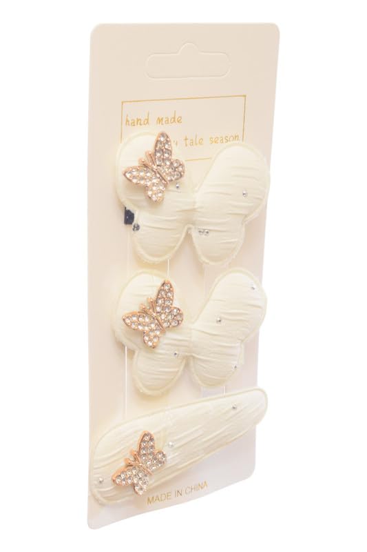 Daphane - طقم مشابك بتصميم فراشة للبنات من دافان، 3 قطع - لون أبيض