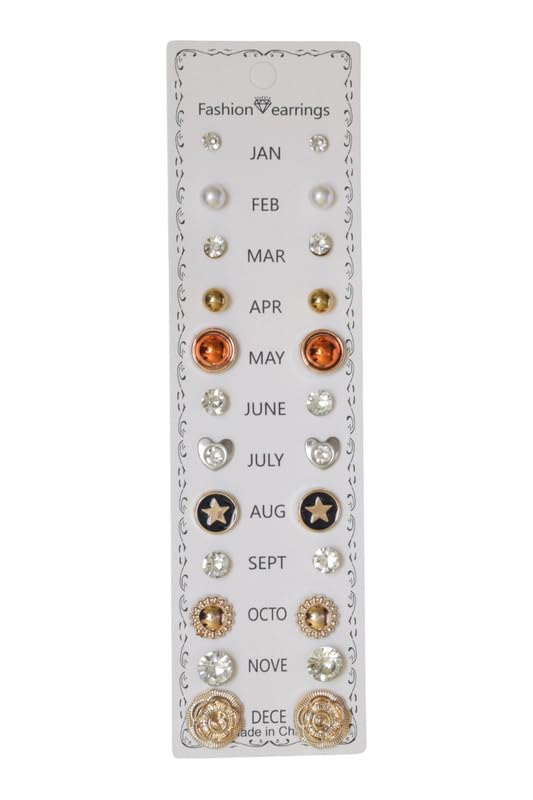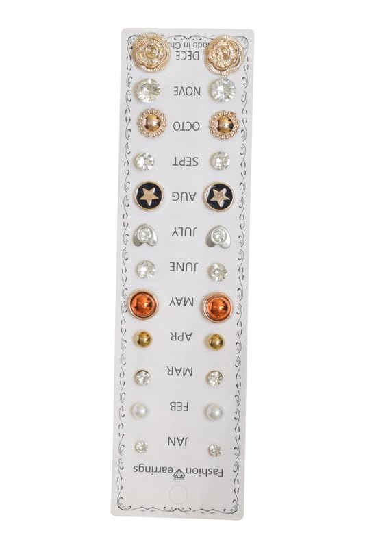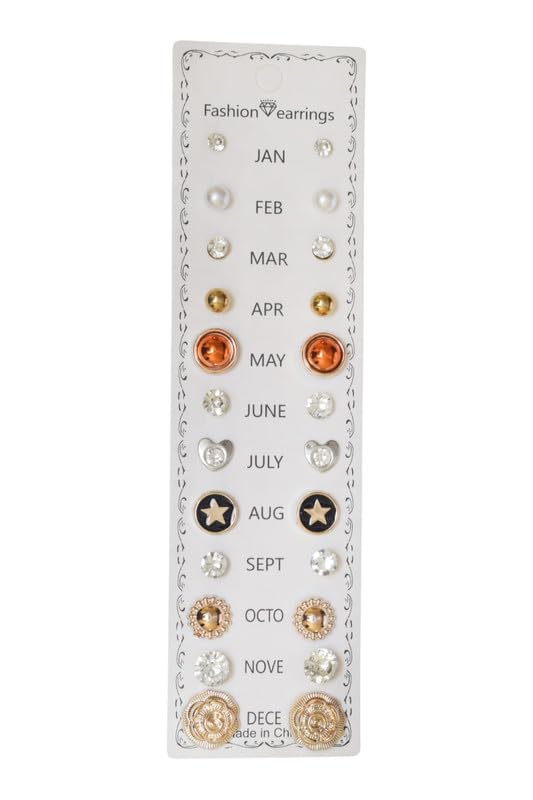 DAPHNE - دافني طقم حلق صغير بريمة بانماط متعددة للبنات، 12 قطعة - متعدد الالوان
