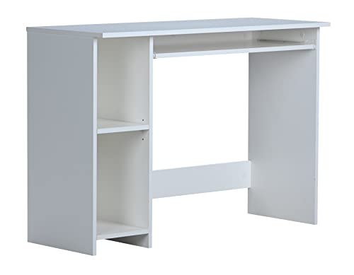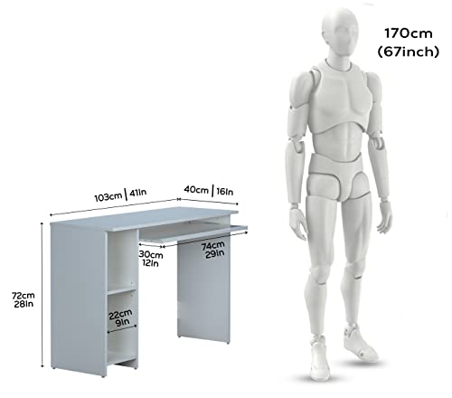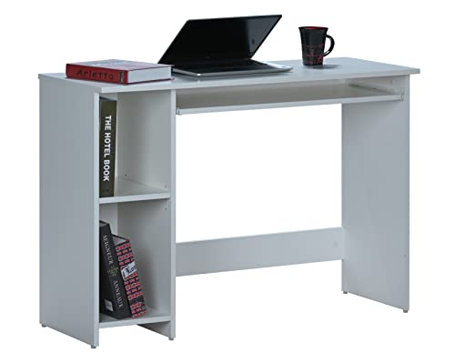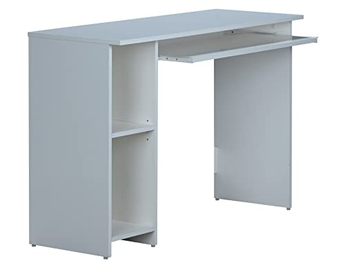 DeckUp - طاولة مكتب للدراسة والكمبيوتر مصنوعة من الخشب الهندسي ابولو-كيه تي مع صينية كيبورد ديك اب لون ابيض لمسة نهائية غير لامعة .