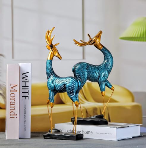 • تصميم أنيق: مجموعة من 2 مجسم غزال يتميز بمزيج مذهل من الأجسام الفيروزية المزخرفة مع قرون وحوافر ذهبية معدنية