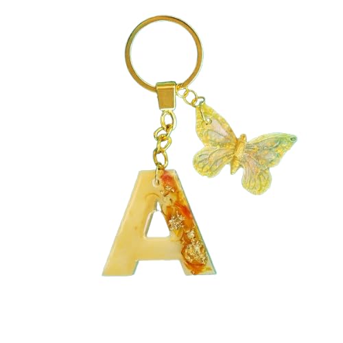 Generic - سلسلة مفاتيح مزخرفة من الراتنج على شكل حرف A مع تعليقة فراشة، لون ذهبي