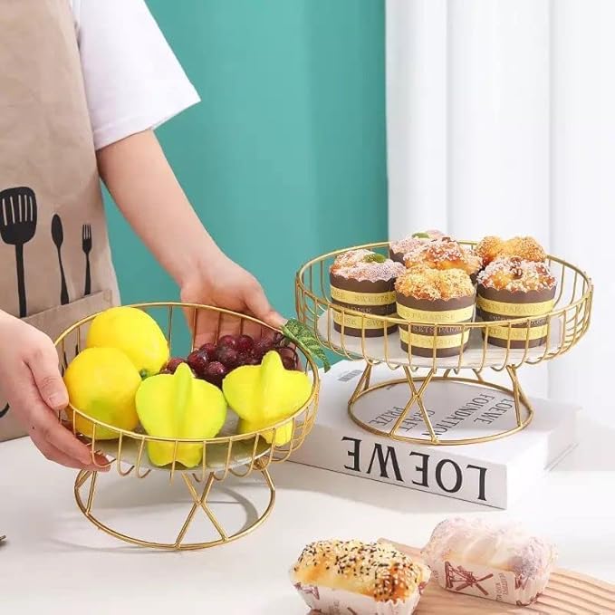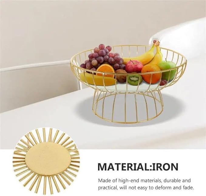 - تصميم أنيق: وعاء فاكهة بإطار سلكي ذهبي اللون مع تصميم هندسي عصري يخلق قطعة عرض لافتة للنظر لمطبخك أو طاولة الطعام