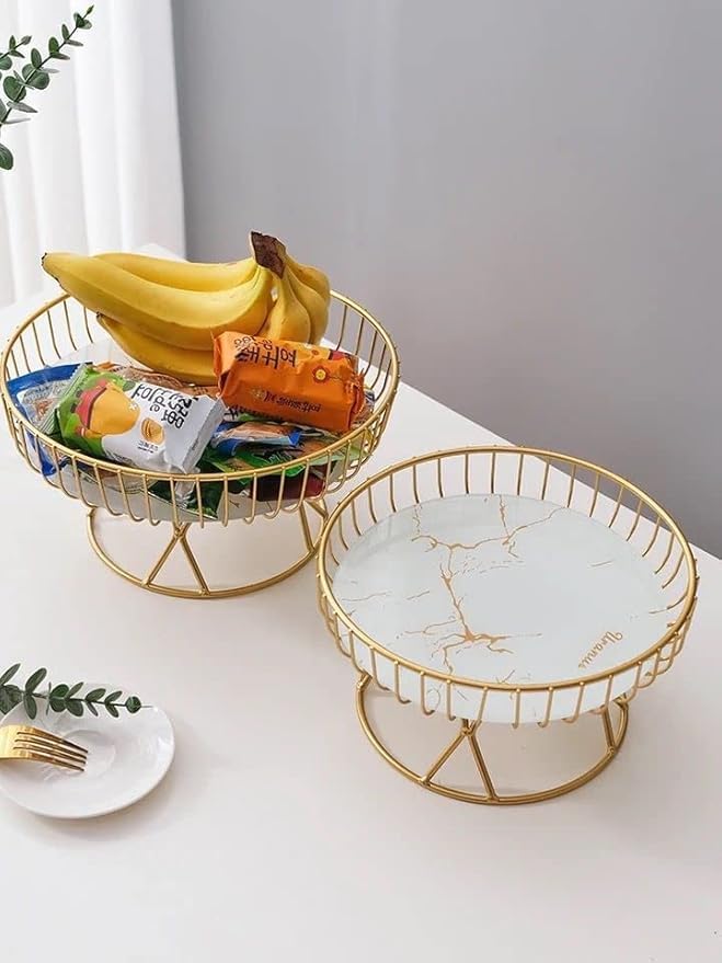 Generic - وعاء فاكهة معدني مزخرف، حامل إطار سلكي ذهبي، سلة عرض دائرية للمطبخ والحلوى وديكور الحفلات