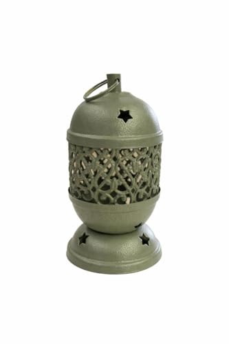 - تصميم زخرفي مميز: فانوس معدني بلون أخضر زيتوني مع نقوش مخرمة جميلة تضفي لمسة فنية تقليدية على ديكور منزلك