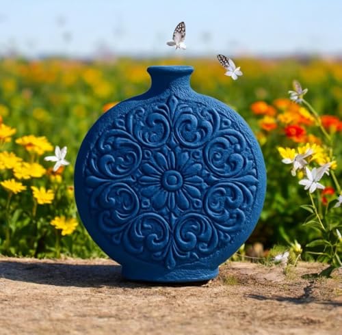 - تصميم أنيق: فازة دائرية مصنوعة بشكل جميل تتميز بنمط ماندالا بتفاصيل دقيقة مع نقشة زهور مفصلة وزخارف فنية بارزة علي السطح.