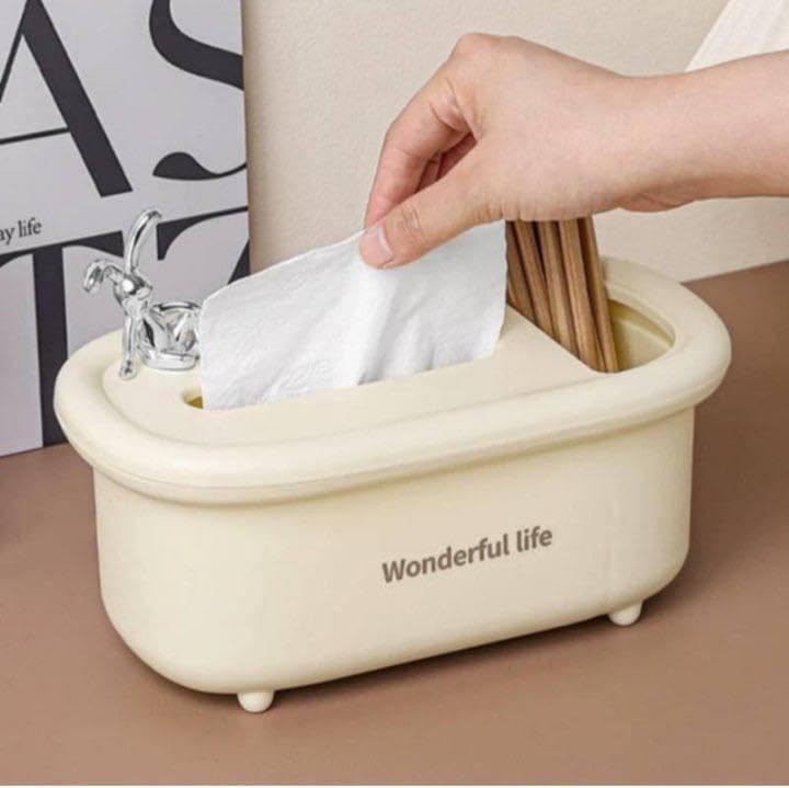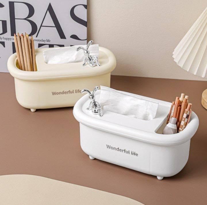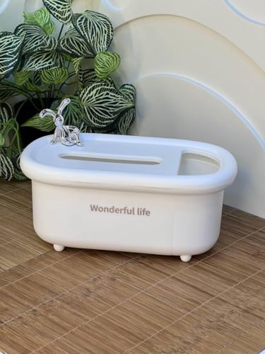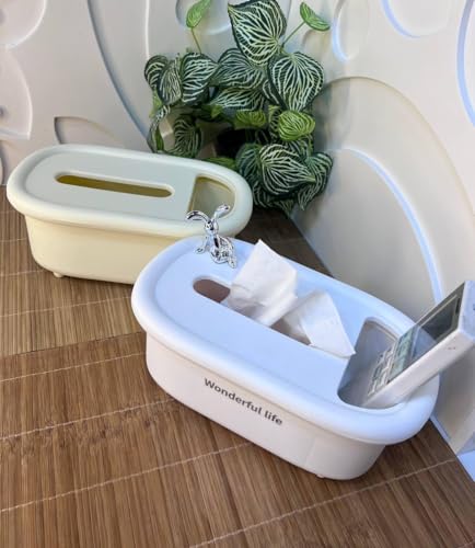 Generic - صندوق مناديل بلاستيكي مزخرف على شكل ارنب - منظم مناديل على شكل حوض الاستحمام مع مساحات تخزين للمكياج والاقلام وجهاز التحكم عن بعد والاساسيات - ملحقات منزلية متينة وممتعة (عبوة واحدة)
