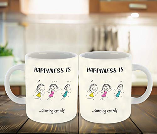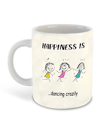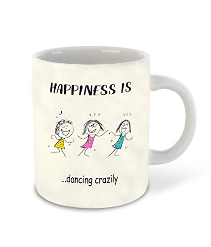 Generic - كوب قهوة سيراميك مطبوع بعبارة Happiness is Dancing Crazily باللون الابيض من الداخل من ديكور فيكور™ | كوب شرب | كوب حليب - افضل هدية | السعادة (تصميم 2)