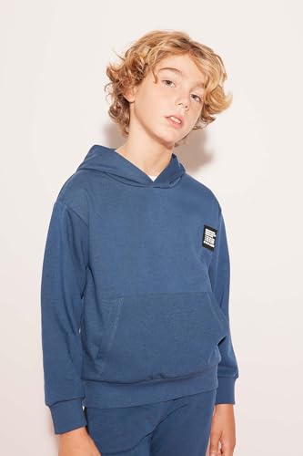 DeFacto - سويت شيرت محبوك بغطاء للرأس وأكمام طويلة وقصة كبيرة للأولاد A6586A8 من ديفاكتو