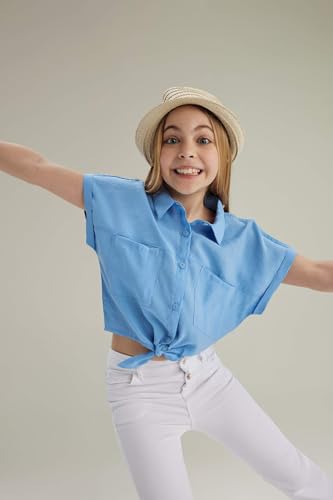 DeFacto - قميص بيسيك بأكمام قصيرة وقصة قصيرة للبنات موديل Z4909A6 من ديفاكتو