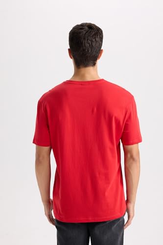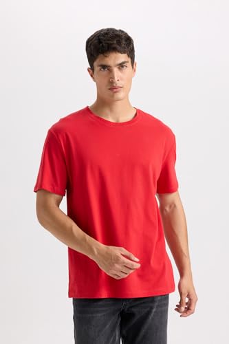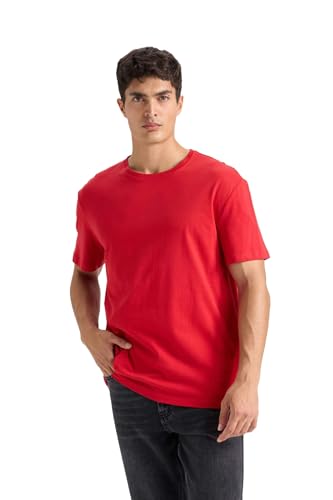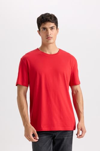 DeFacto - ديفاكتو تيشرت جديد منسوج بقصة عادية ورقبة دائرية ضيقة واكمام قصيرة للرجال E1091AX، لون احمر، مقاس S