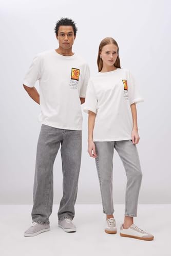 DeFacto - تيشرت قصير الأكمام بمقاس كبير ورقبة دائرية ضيقة للنساء من ديفاكتو، موديل C3774AX