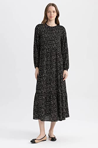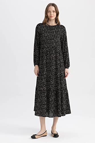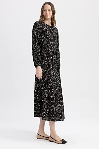DeFacto - فستان من نسيج محبوك بأكمام طويلة ورقبة شكل C بنقط بيج للنساء ديفاكتو