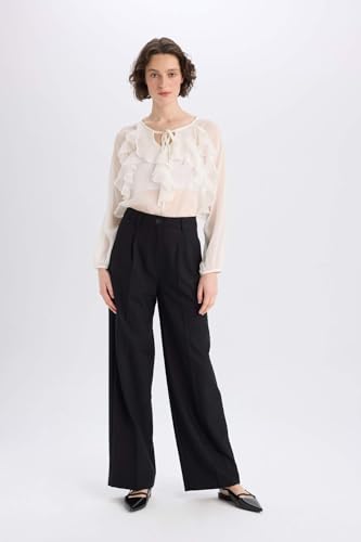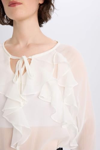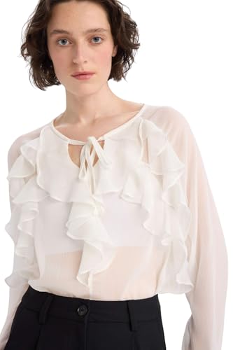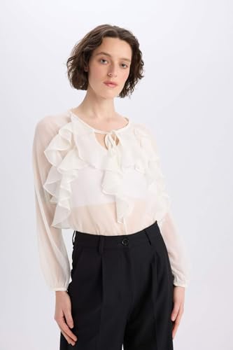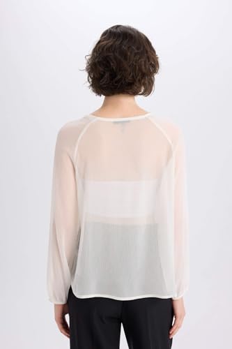 DeFacto - بلوزة نسائية كاجوال بقصة عادية ورقبة شكل V وأكمام طويلة منسوجة من ديفاكتو (عبوة من 1 قطعة)