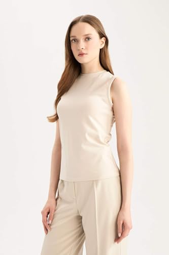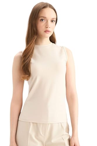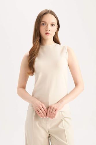 DeFacto - تونيك للنساء بقصة عادية ورقبة مستديرة بدون أكمام قصير محبوك من ديفاكتو (عبوة من قطعة واحدة)