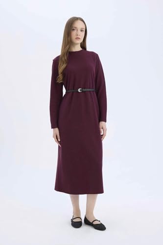 DeFacto - فستان محبوك بأكمام طويلة ورقبة C وقصة عادية للنساء من ديفاكتو، موديل E5790AX