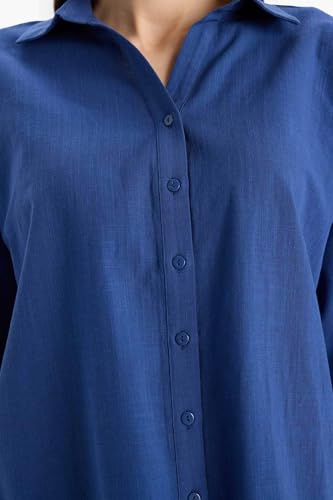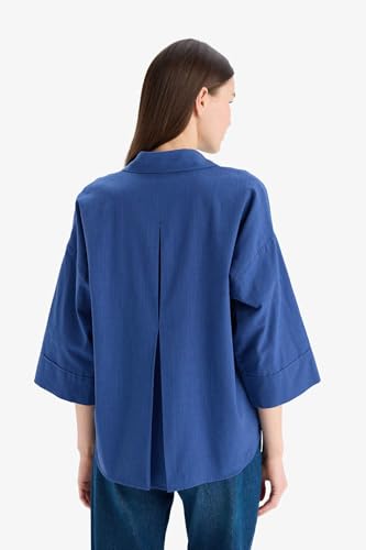 DeFacto - قميص تقليدي بقصة عادية بياقة قميص وكم ثلاثة أرباع، مصنوع من قماش من نسيج محبوك للنساء من ديفاكتو (عبوة من قطعة واحدة)