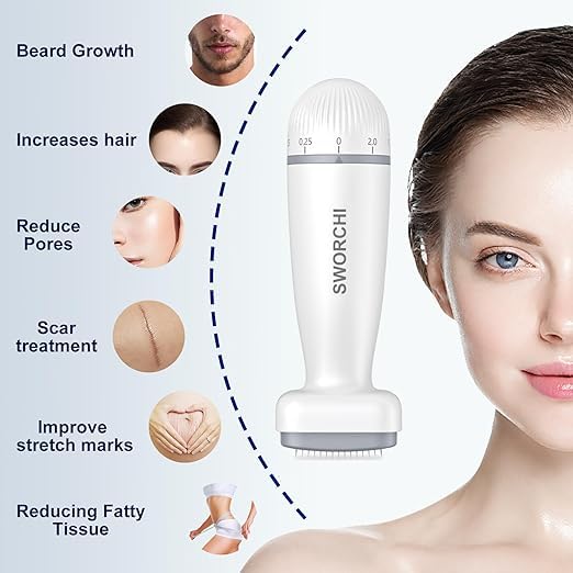- ديرما ستامب ميكرونيدلينج للمناطق المستهدفة: قم بختم المكان الذي تحتاج فيه إلى التحكم في التفاصيل بدلاً من التدحرج، مما يساعدك على بناء روتين متسق للعناية بالوجه وفروة الرأس للحصول على ملمس بشرة أكثر نعومة.