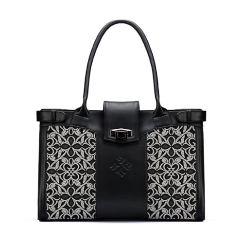 Generic - شنطة يد مصممة بنمط مطرز، مقبض مزدوج، اسود وفضي