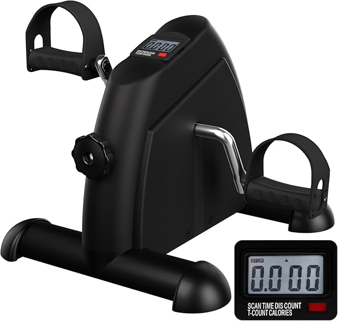 Generic - جهاز تمرين بدواسة الدراجة المكتبية، دراجة تمارين صغيرة لكبار السن مع شاشة ال سي دي محمولة للجلوس والساق والذراع مع بساط مضاد للانزلاق للمنزل والمكتب (أسود)