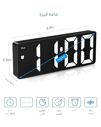 - تتميز الساعة بشاشة ال اي دي كبيرة متعددة الوظائف بقياس حوالي 16 × 1.78 سم، مما يوفر رؤية واضحة من مسافة بعيدة، وتتضمن أوضاع مختلفة مثل عرض الوقت والتاريخ ودرجة الحرارة والوضع الليلي وإعدادات التنبيه، مما يجعلها متعددة الاستخدامات للغاية للاستخدام المنزلي أو المكتبي.