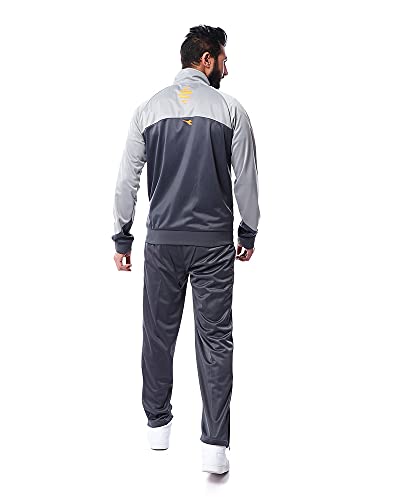 Diadora - بدلة رياضية لونين جاكيت بسوستة امامية ورقبة مرتفعة مع بنطلون رياضي قصة مستقيمة للرجال من ديادورا - رمادي فاتح ورمادي داكن