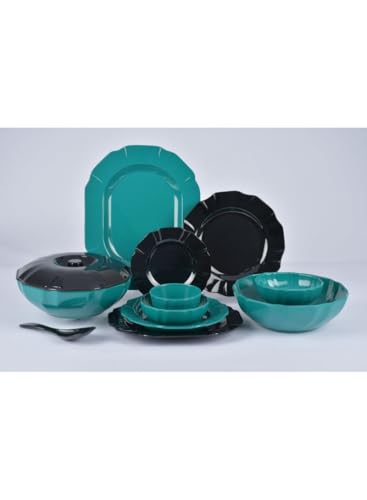 generic - طقم ميلامين دايموند مكون من 42 قطعة من دايموند بلون اسود/تركواز