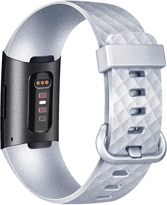 Generic - سوار ساعة بديل بنمط ماسي لساعة فيتبيت تشارج 3 - 4 بلون فضي ، للبالغين من الجنسين