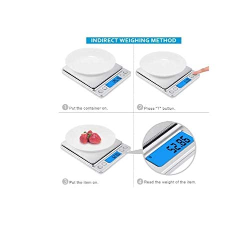 Spaceshoop - ميزان مطبخ رقمي للمجوهرات صغير للجيب من 1 جم إلى 2 كجم، ميزان طعام للطبخ مع شاشة ال سي دي بإضاءة خلفية 2 صينية 6 وحدات، إيقاف تلقائي ووظيفة قطع فارغة