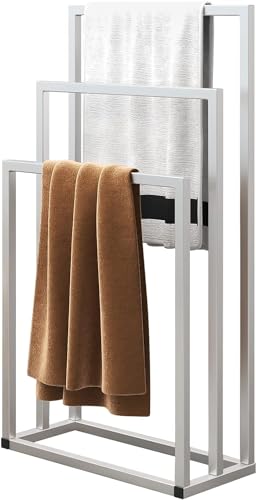Generic - رفوف فوط معدنية قائمة بذاتها لحامل فوط الحمام من ديمونذ ، حامل فوط أرضي من 3 طبقات، رفوف فوط من الاستيل مضادة للصدأ، منظم ملحقات لتخزين فوط اليد (فضى)