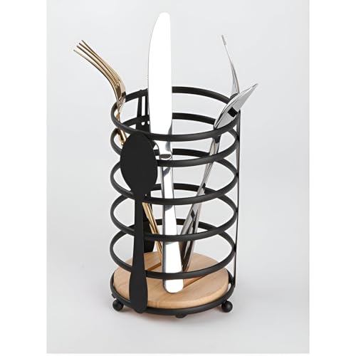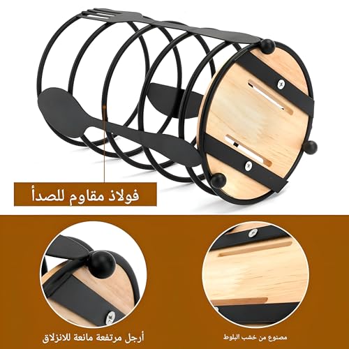 - مصفاة أدوات المائدة هذه مصنوعة من الستانلس ستيل عالي الجودة جنبًا إلى جنب مع خشب البلوط، وتتميز بطلاء مسحوق أسود غير لامع مضاد للصدأ لضمان متانة طويلة الأمد ومقاومة للصدأ، مما يجعلها إضافة موثوقة لأي مطبخ.