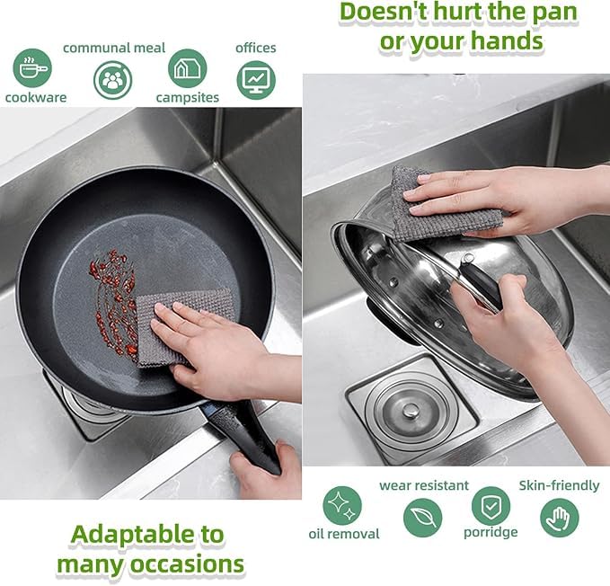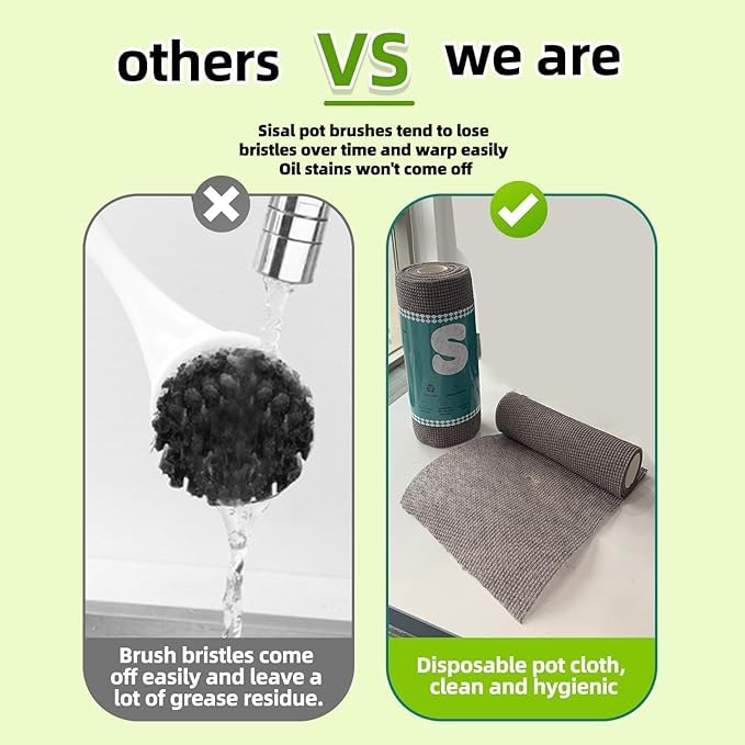 - تجفيف سريع: منشفة الأطباق المصنوعة من الألياف الدقيقة التي تستخدم لمرة واحدة أسهل في التجفيف من إسفنجات غسل الصحون. يمكنك عصرها وتعليقها لتجف. فرشاة تنظيف الأطباق متعددة الأغراض متينة للغاية، ويمكنك حتى استخدام كل وسادة تنظيف 2-4 مرات.