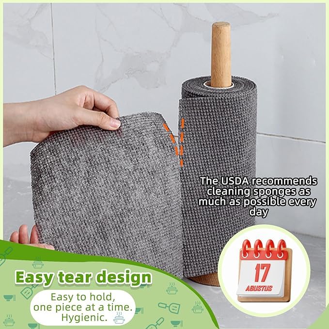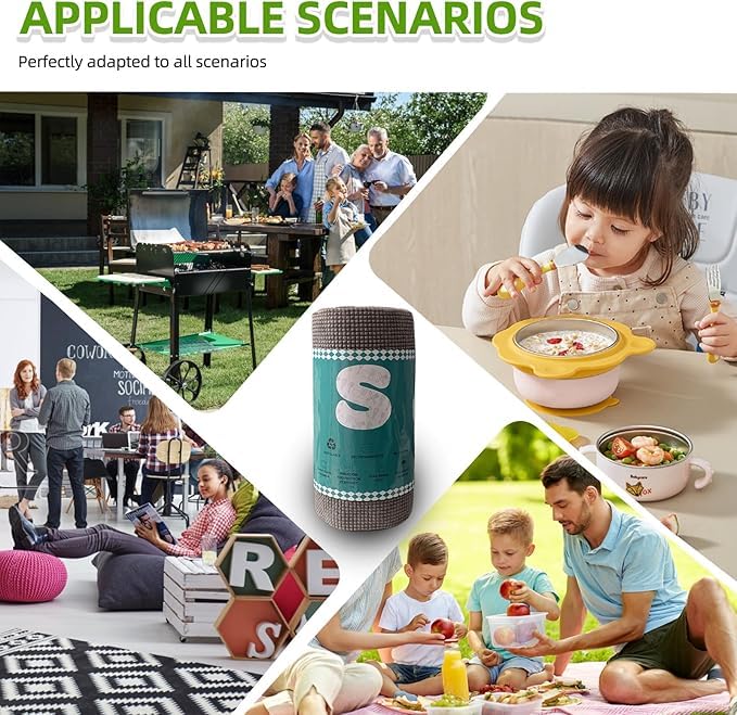 - محمول: يمكنك تمزيق ورقة واحدة في كل مرة على طول الخط المثقب ورميها في سلة المهملات بعد الاستخدام. استخدم مناشف الأطباق التي تستخدم لمرة واحدة لغسل الأطباق كل يوم. يبلغ مقاس كل ورقة تنظيف للاستعمال مرة واحدة 8.6 × 7.8 انش، 25 ورقة × لفتين. كما أنها مريحة جدًا للحمل عند السفر أو التخييم.
