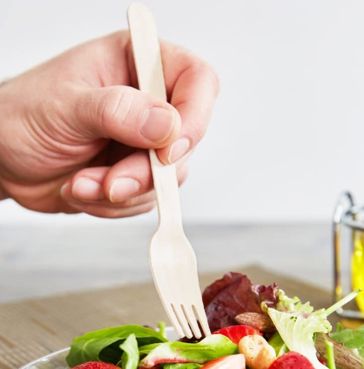 LC - شوكة خشبية للاستعمال مرة واحدة - 100 قطعة من منتجات سيمبلي اورجانيك القابلة للتحلل البيولوجي