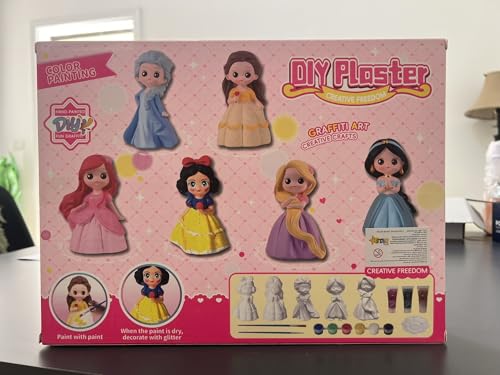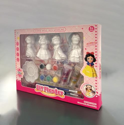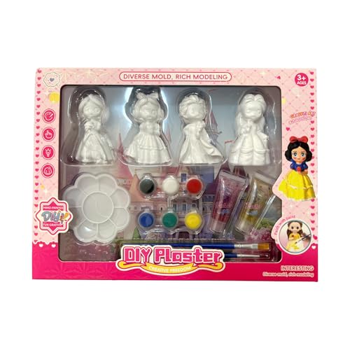Generic - طقم تلوين لشخصيات الأميرات الجصية – مجموعة تلوين يدوية للبنات مع ألوان وفرش و4 قطع + جليتر – لعبة فنون يدوية وتعليمية لعمر 3 سنوات فأكثر