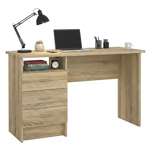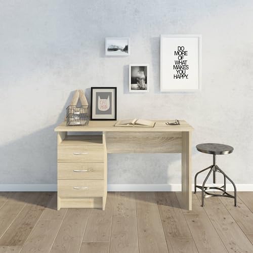 Dmora - مكتب خطي بثلاثة أدراج من دمورا، مقاس 1.2 متر× 51 × 72 سم، لون (بلوط)
