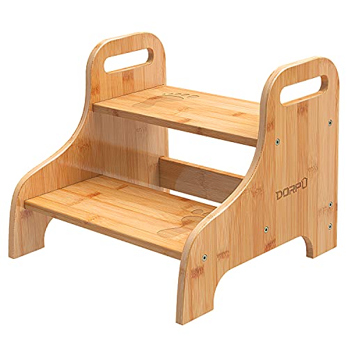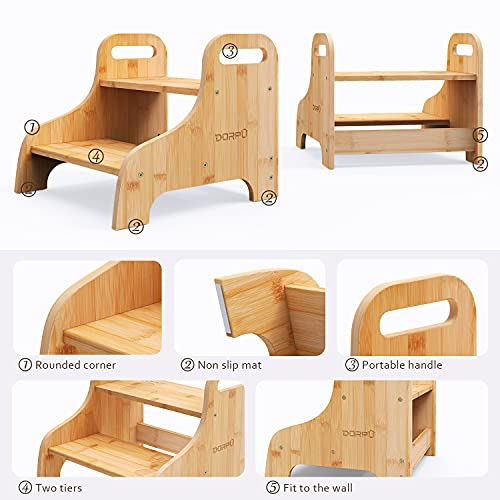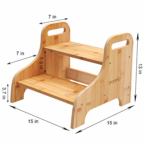 DORPU - مقعد درج من الخيزران للأطفال الصغار مع مقبض دائري للأطفال والكبار، كرسي دوروبو لغرفة النوم 2 درج للتدريب على استخدام المرحاض في غرفة المعيشة بجانب السرير والمطبخ