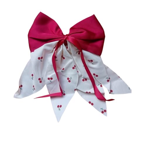 Generic - ربطة شعر بفيونكة مزدوجة بنقشة الكرز، أبيض وأحمر، مع مشبك، إكسسوار شعر للبنات