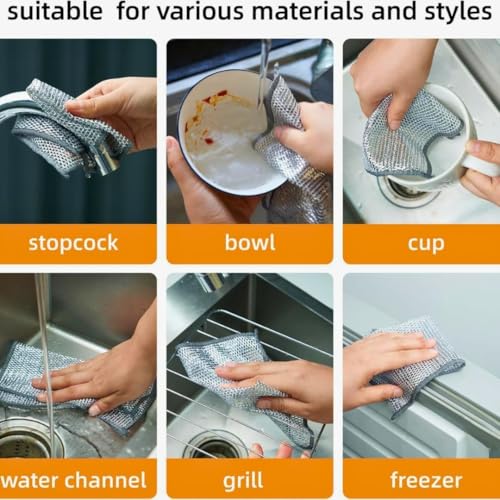 Generic - قطعة قماش سلكية متينة مزدوجة الجوانب غير خادشة متعددة الأغراض لتنظيف المطبخ للاستخدام الرطب والجاف، قابلة لإعادة الاستخدام للأحواض والفجوات والأواني والمقالي والأطباق مع سهولة الشطف بأداء يدوم طويلًا
