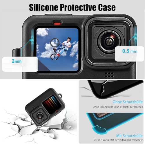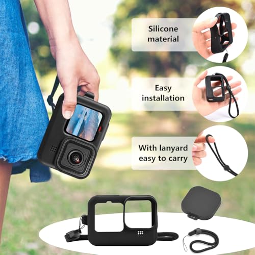 Doukesh - جراب حماية من سيليكون لكاميرا جوبرو هيرو 9 و10 و11 و12، مجموعة ملحقات حافظة من السيليكون أسود
