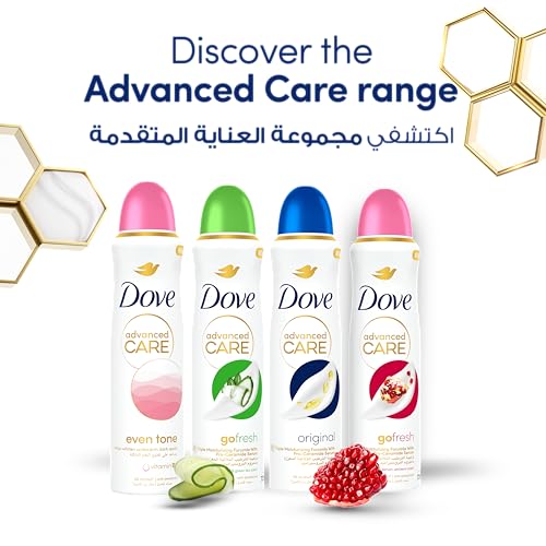 - دوف عناية متقدمة، مجموعتنا المضادة للتعرق الأكثر عناية مع تركيبة ترطيب ثلاثية، حماية فعالة 72، لطيفة على البشرة، حتى بعد الحلاقة.