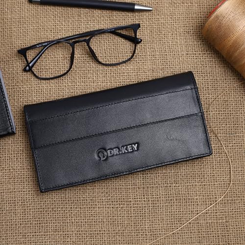 dr.key - محفظة من دكتور كي مصنوعة من جلد فول جرين للرجال، بتصميم كلاسيكي باي فولد باللون الأسود، مع حماية RFID ومتعددة الأقسام
