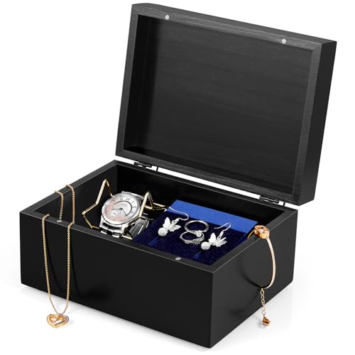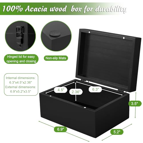 DRASTAR - صندوق تذكاري من دراستار، صندوق ذاكرة خشبي مع اغطية، صندوق مجوهرات خشبي اسود، صندوق ذاكرة للجنازة، صندوق خشبي مزخرف صغير