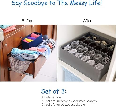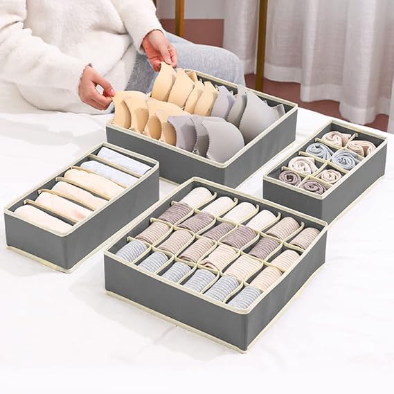 Generic - منظم ادراج ، منظم بفواصل قابل للطي للدولاب، صندوق تخزين ملابس داخلية قابل للطي لحمالات الصدر والشرابات والكرافتات والسكارفات والاكسسوارات، 4 قطع