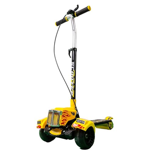 Dream Land - سكوتر قابل للطي بتصميم بعجلتين مزين بطبعة نيران من دريم لاند، SK-106، أصفر