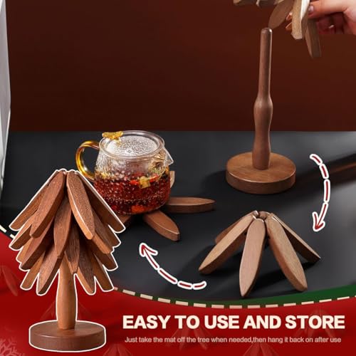 • 【حامل شجرة الكريسماس】الركائز للأطباق الساخنة جميلة جدًا مثل الشجرة، التصميم الفريد يجعل قواعد الأكواب الخشبية ديكورًا ساحرًا على الطاولة، كما يمكن أن تكون مجموعة حوامل الشجرة الخشبية بمثابة ديكور للأشجار الطبيعية، وتزين طاولة مطبخك بشكل جميل