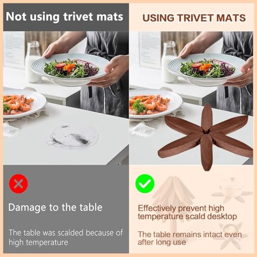 • 【مقاومة للحرارة وتحمي الطاولة】يمكن للركائز الخشبية للأطباق الساخنة تحمل درجة الحرارة من الطعام الساخن مع منع تلف الحرارة لسطح الطاولة، توفر الركائز الخشبية حماية ممتازة من الحرارة لأسطح الطاولات وطاولة الطعام، كل قطعة متينة وتتعامل مع الأواني الساخنة والمقالي دون أي مشكلة
