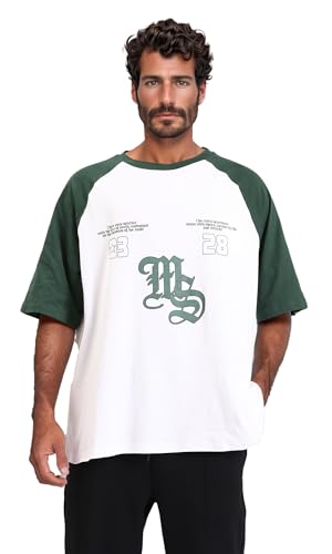 Dsisskai - Dsisskai Mens Bi-Tone Crew Neck Printed Tee - Dark Green & White Modern (pack of 1)