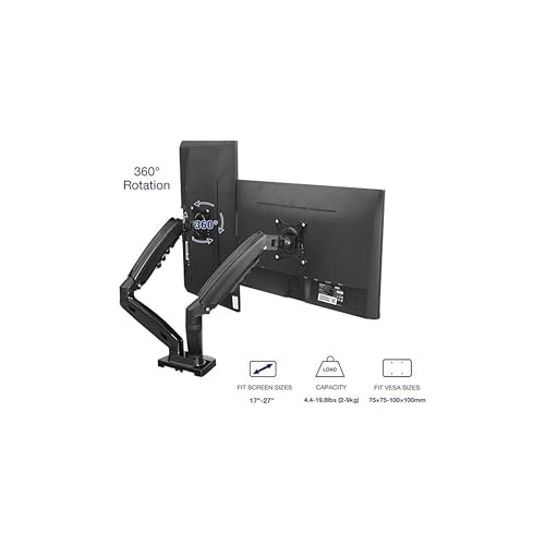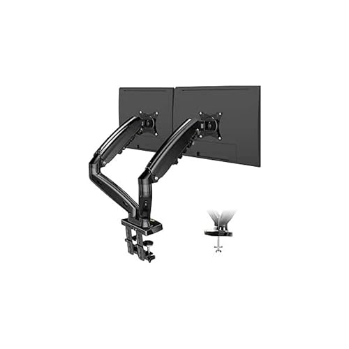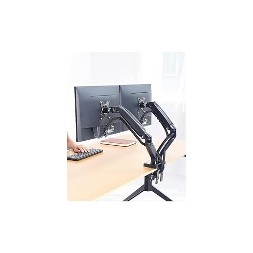 Generic - حامل ذراع شاشة مزدوج، حامل مكتب قابل للتعديل، زنبرك غاز، تصميم مريح، اسود