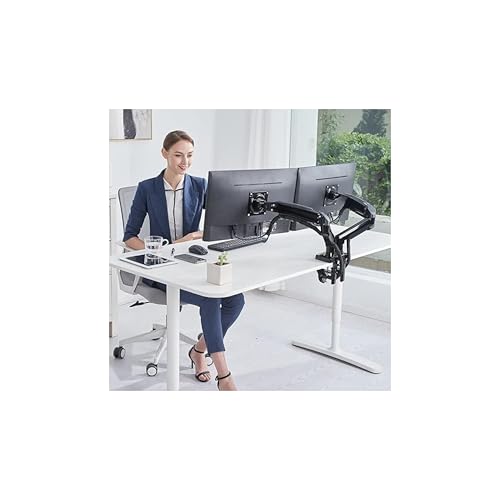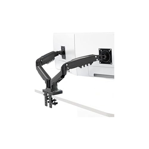 Generic - حامل ذراع شاشة مزدوج، اسود، مشبك مكتب، زنبرك غاز مفصلي قابل للتعديل، حامل عرض مريح