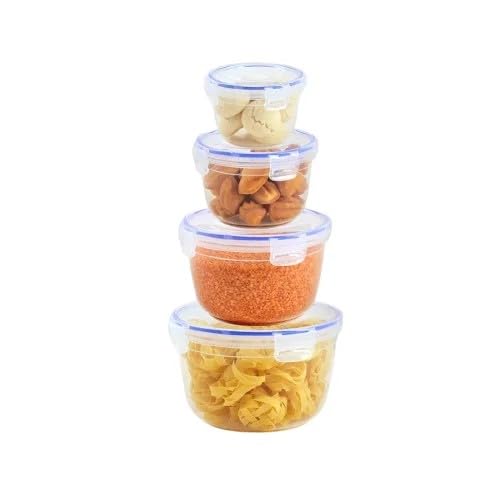 dunya - مجموعة تخزين طعام بلاستيكية من دنيا من 4 قطع: خالية من البيسفينول أ، 625-3400 مل مع سدادات سيليكون